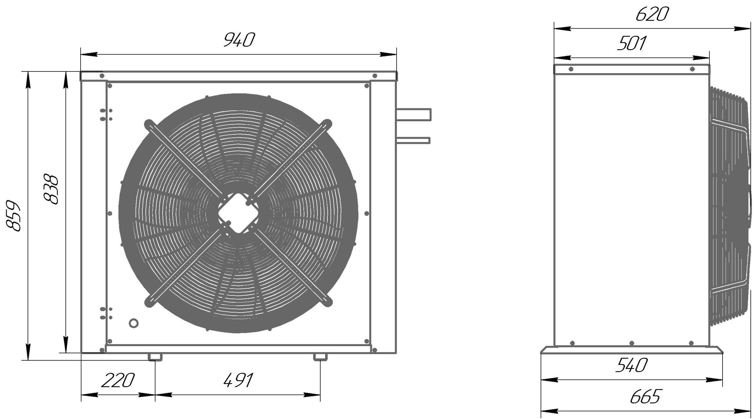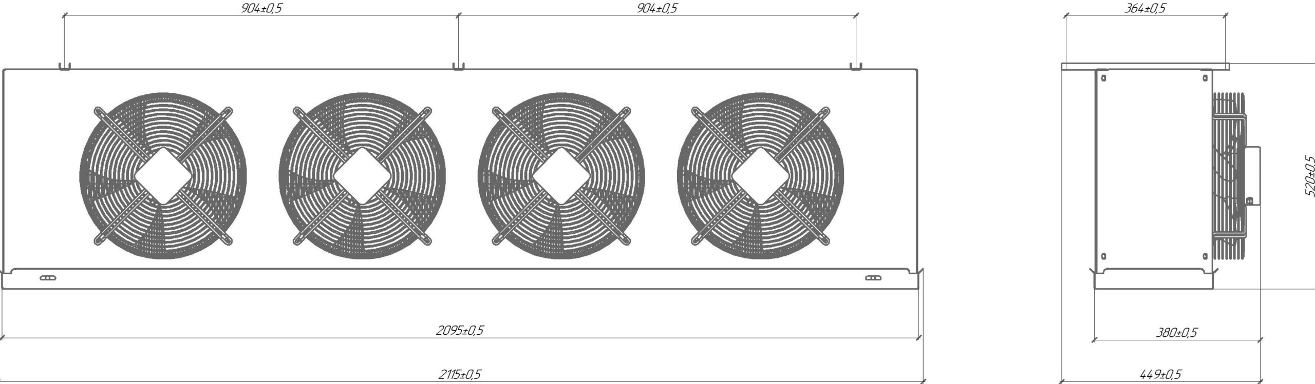 3. Воздухоохладитель с корпусом из алюминия с установленными ТЭНами и вентиляторами