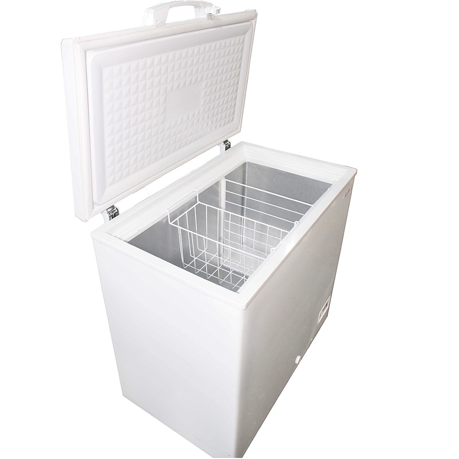 Морозильный ларь Aucma BD-325NA предназначен для демонстрации, заморозки и длительного хранения продуктов, полуфабрикатов и мороженого на предприятиях торговли и общественного питания. Модель оснащена корзиной из стальной проволоки с порошковым покрытием, делителем продуктов и откидной литой крышкой с ручкой и замком. Корпус выполнен из рельефного алюминия, внутренний короб — из алюминия, крышка — из пластмассы, покрытой порошковой краской CRS (холоднокатаная сталь), шарниры — из металла с пластиковым покрытием, теплоизоляция — из полиуретана толщиной 60 мм.