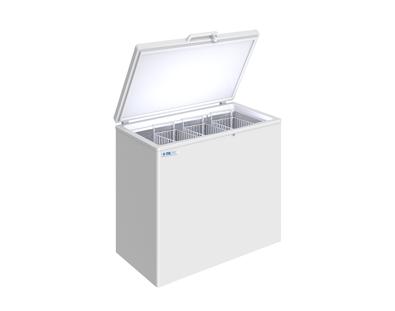 Морозильные лари с глухими крышками ITALFROST ЛН_серия S идеально подходят для длительного хранения замороженных продуктов на предприятиях общественного питания. Оптимальные габариты морозильника позволяют установить его в любом подсобном помещении. Плотно прилегающая крышка не дает теплому воздуху проникнуть внутрь ларя, а усиленные петли способны выдержать интенсивную эксплуатацию. Крышка морозильного ларя из шлифованной нержавеющей стали гигиенична, устойчива к царапинам и может использоваться в качестве дополнительной рабочей зоны.