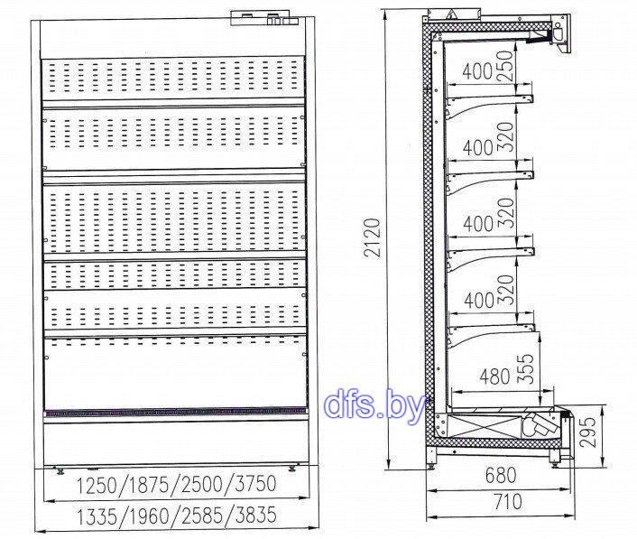 Витрины пристенные гастрономические серии ONEGA 0,7 П2 представляют собой среднетемпературное холодильное оборудование (холодильные горки) с динамическим охлаждением на выносном холодообеспечении.
